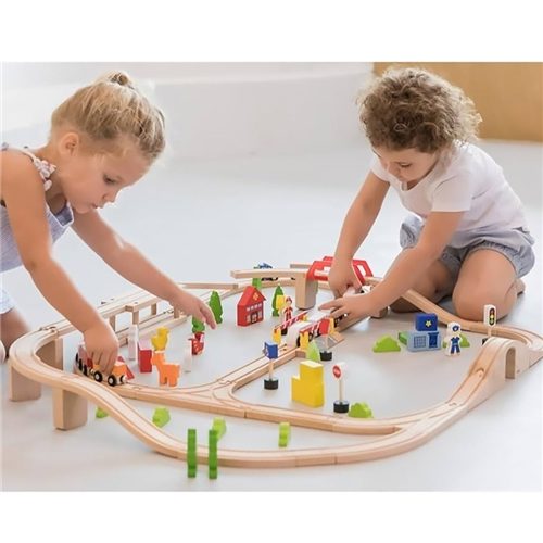 The rails are made of high quality beech wood and are all interlock-able so that various designs can be created. This beautiful set is 100% safe and non-toxic.