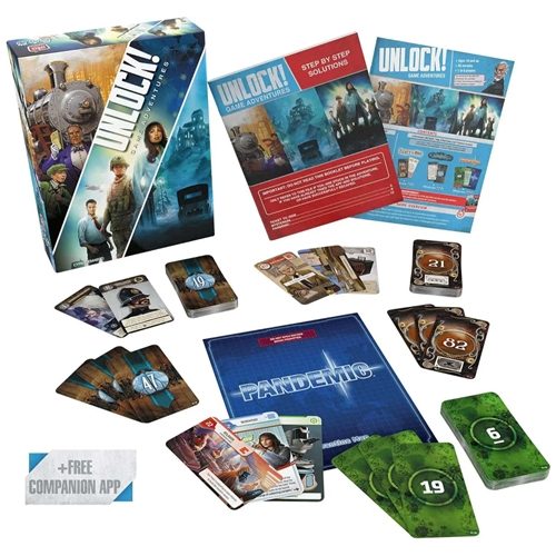 Unlock! is a cooperative card game inspired by escape rooms that uses a simple system which allows you to search scenes, combine objects, and solve riddles. Play Unlock! to embark on great adventures, while seated at a table using only cards and a companion app that can provide clues, check codes, monitor time remaining, etc.