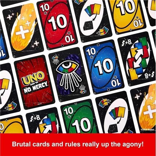 - This UNO Show 'em No Mercy expansion pack adds some fresh, ruthless rules to your existing UNO Show 'em No Mercy deck!