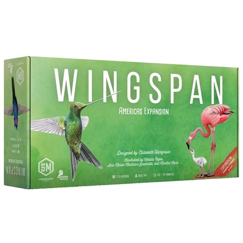 In the fourth expansion to Wingspan, we explore the wildly biodiverse region of the Americas, adding birds from Mexico, Central America, South America, and the Carribean. There are 111 new species introduced to the main deck of Wingspan, as well as 40 unique hummingbird species that are part of the new hummingbird garden mechanic and are featured on smaller cards. Hummingbirds flit and flutter from your board, the garden, and other player's boards, leaving gifts everywhere they visit. If you can master their movements, you are sure to score some big points.