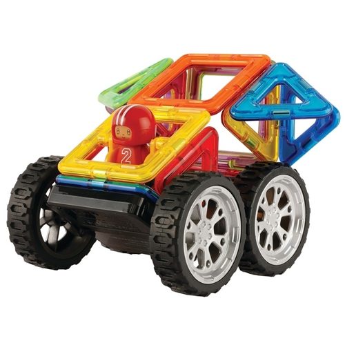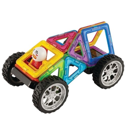 Construct you own vehicles with the Magformers Wow Plus Set. Includes Click wheels for more cohesive construction models and one figure with replaceable helmets! 18 pcs. in total! Now with 30 different construction models available! The magnets in Magformers are welded in and securely encapsulated, but can still rotate so magformers can be put together on all edges. The neodymium magnets used in Magformers are the strongest of its kind for guaranteed connectivity.