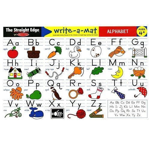 Reusable, children can write in their answers with a No. 2 pencil or (not-included) Learning Mat Crayons. Perfect for lunch-time drills, extra practice—and entertainment—at restaurants, and fun supplemental seatwork practice! This alphabet mat features a variety of pictures to trace and letters to learn by following numbered arrow guides featured on back of the sheet.